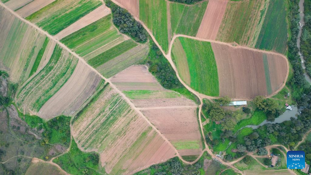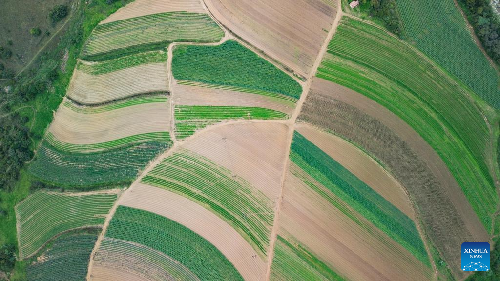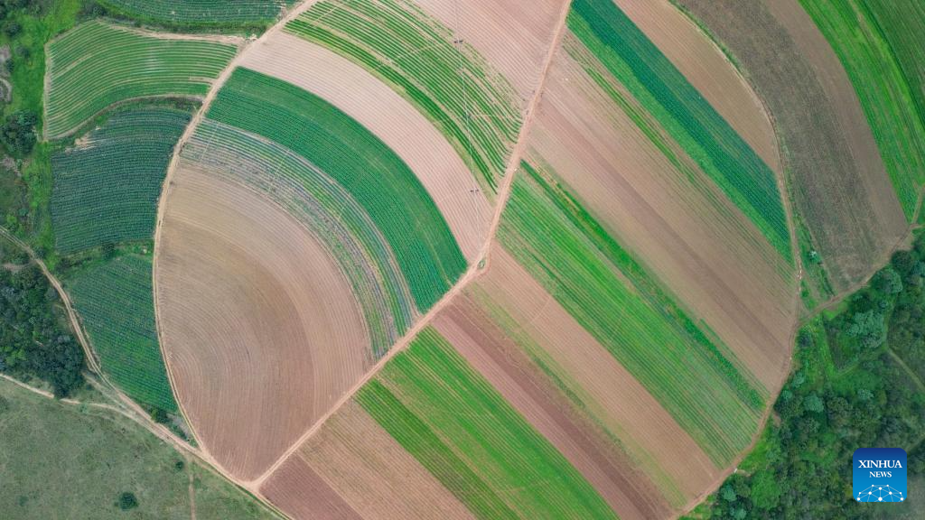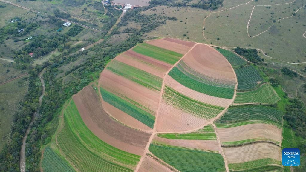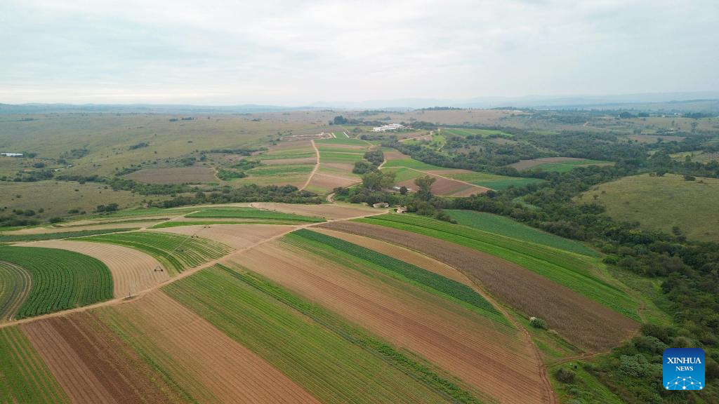 An aerial drone photo taken on April 25, 2026 shows farmlands in the suburb of Johannesburg, South Africa. (Xinhua/Chen Wei)