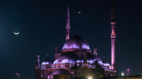 Crescent moon seen over Saladin Citadel on second day of Ramadan in Cairo