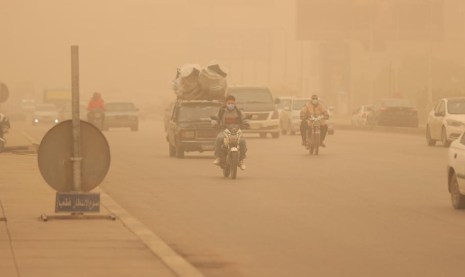 Vehicles seen on road amid dust storm in Cairo, Egypt