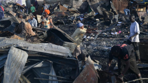 Fire breaks out in Kibera slum in Nairobi, Kenya