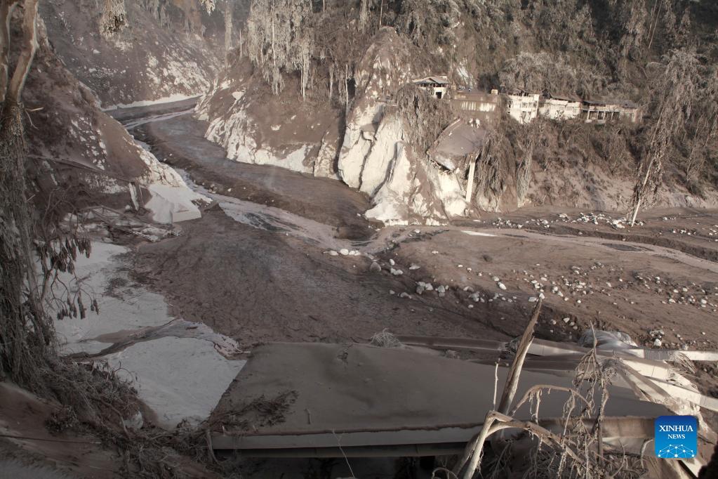 Damages are seen after Mount Semeru eruption at Sumberwuluh village in Lumajang, East Java, Indonesia, Dec. 5, 2021. Semeru volcano erupted on Saturday, leaving a person killed, two people missing and 40 others injured, a local official told a joint virtual press conference. (Photo by Bayu Novanta/Xinhua)