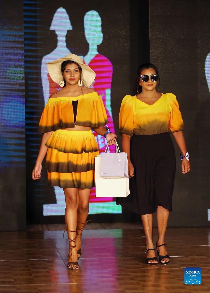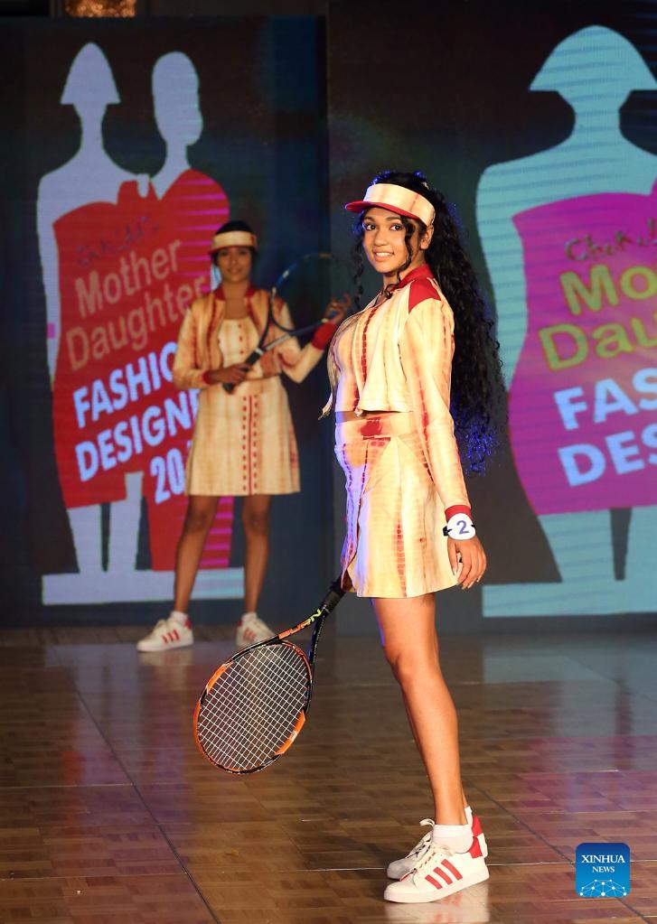Models present creations during the Mother Daughter fashion show in Colombo, Sri Lanka, on Dec. 5, 2021. (Photo by Ajith Perera/Xinhua)