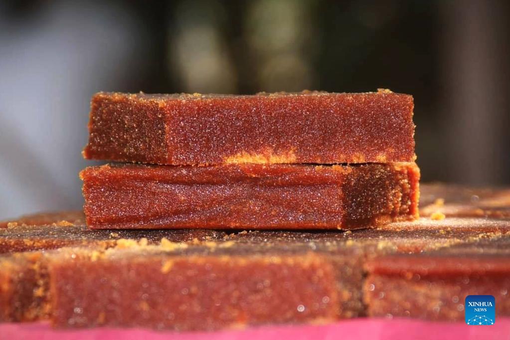 Photo taken on Dec. 6, 2021 shows molasses made of date palm fruits at a village in Magura, Bangladesh. Molasses made of date palm fruits is a traditional delicacy in Bangladesh. It also serves as a basic ingredient for making traditional sweets in winter. (Xinhua)