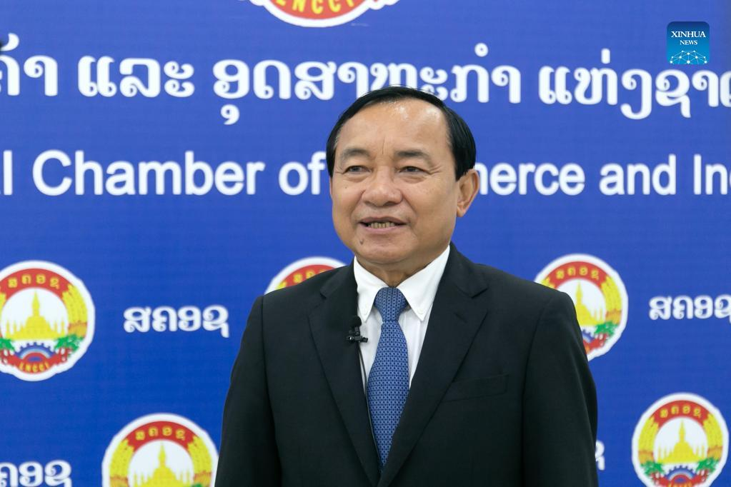 Daovone Phachanthavong, the vice executive president of the Lao National Chamber of Commerce and Industry, speaks in an interview with Xinhua in Lao capital Vientiane, Jan. 7, 2022. (Photo by Kaikeo Saiyasane/Xinhua)