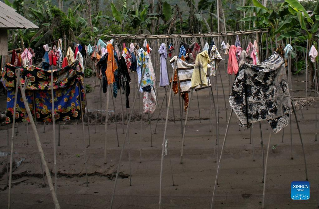 Clothes covered by volcanic ash from Mount Semeru are seen at Curah Kobokan village in Lumajang, East Java, Indonesia, Jan. 9, 2022. (Photo by Kurniawan/Xinhua)