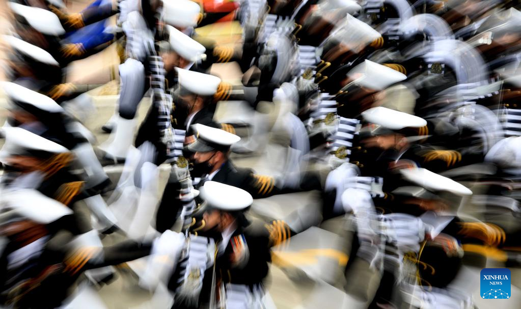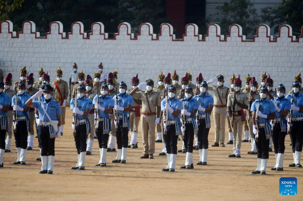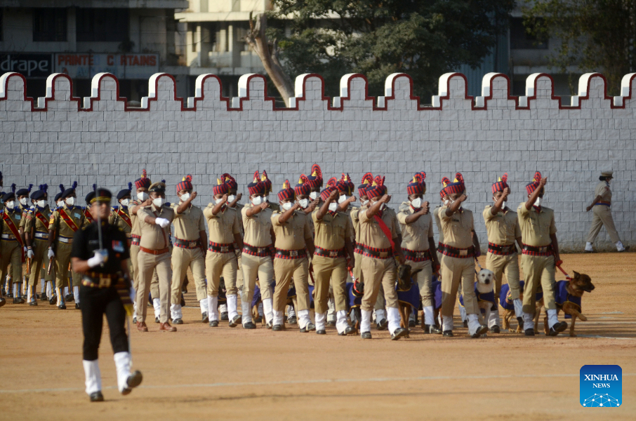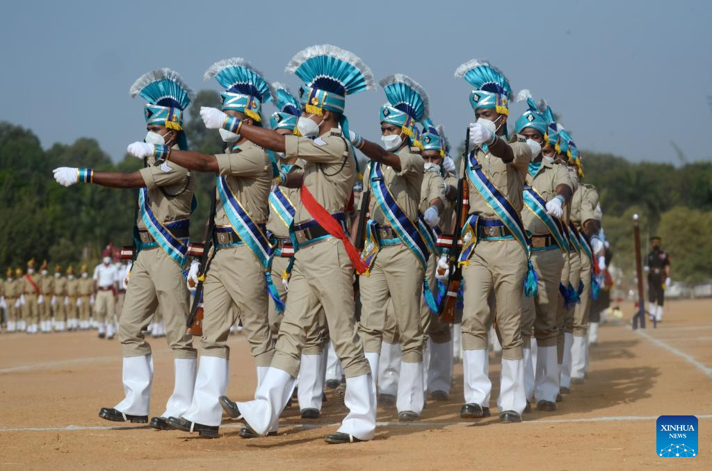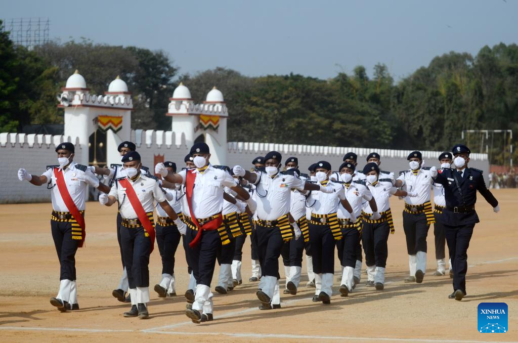 A parade is held on the occasion of India's 73rd Republic Day celebration in Bangalore, India, Jan. 26, 2022. (Str/Xinhua)