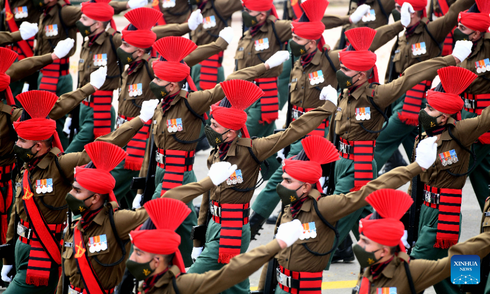 A contingent takes part in the 73rd Republic Day parade at Rajpath in New Delhi, India, Jan. 26, 2022. (Xinhua/Partha Sarkar)