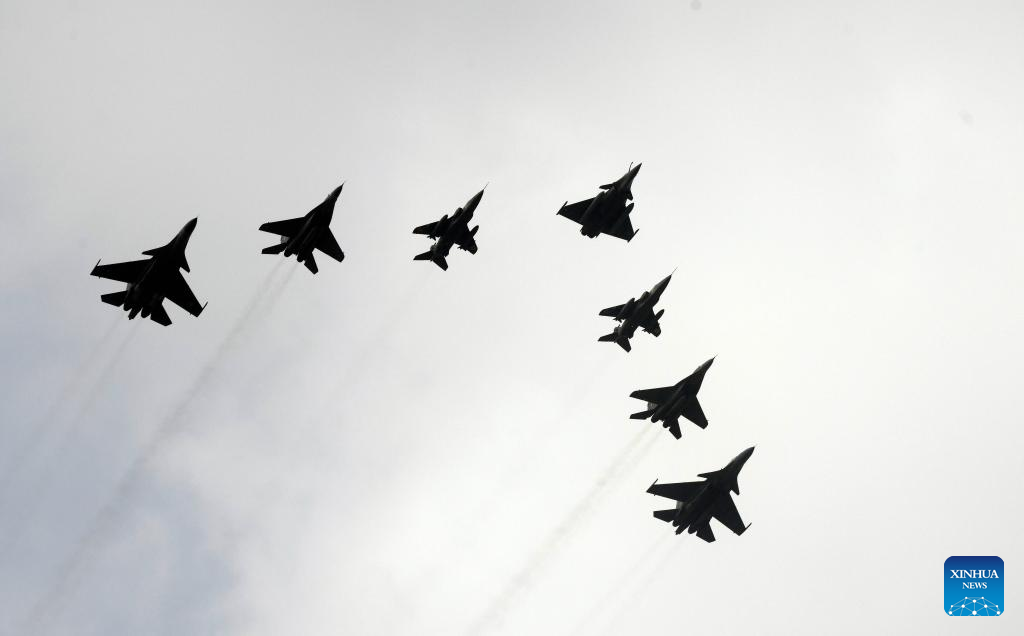 Fighter aircrafts of Indian Air Force flies in a formation during the 73rd Republic Day parade at Rajpath in New Delhi, India. (Xinhua/Partha Sarkar)