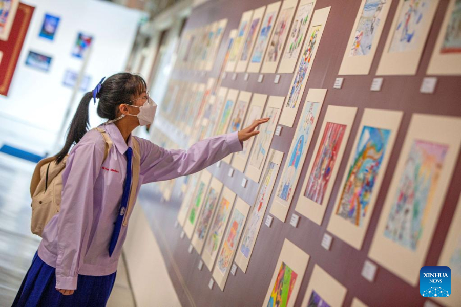 BANGKOK, Jan. 29 (Xinhua) -- Phichada Klinsukhon, a 17-year-old student from Thailand's Nakhon Pathom province, was very glad to see her painting put on display at the Ratchadamdoen Contemporary Art Center in downtown Bangkok.