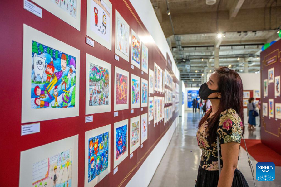 "The topic of my painting is 'Beijing Winter Olympics -- Together for a Shared Future'," Phichada told Xinhua at the exhibition.