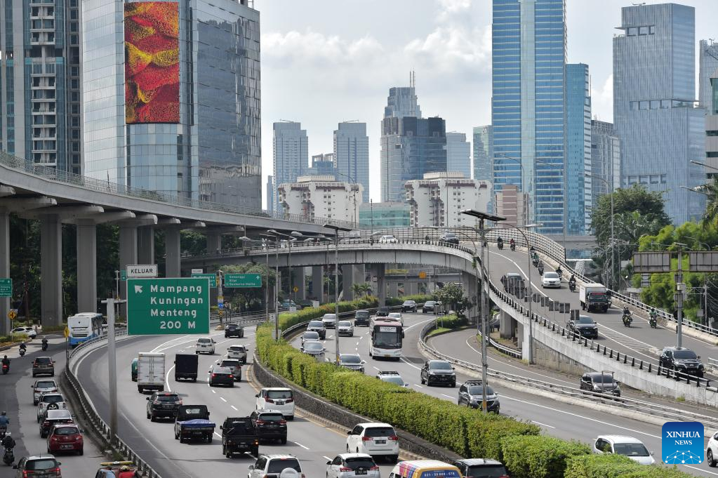 Vehicles run on a main road in Jakarta, Indonesia, Feb. 7, 2022. Indonesia's economy in 2021 grew 3.69 percent, compared with a 2.07-percent contraction in the previous year, the Statistics Indonesia (BPS) said Monday on a virtual press conference. (Xinhua/Veri Sanovri)