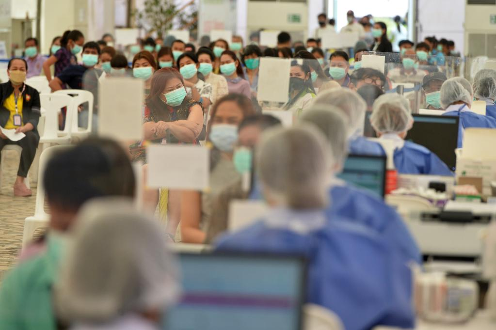 People wait to receive the COVID-19 vaccine in Bangkok, Thailand, on Feb. 23, 2022. Thailand reported 21,232 new COVID-19 cases during the past 24 hours, the highest single-day case tally in more than six months, official data showed on Wednesday. (Xinhua/Rachen Sageamsak)