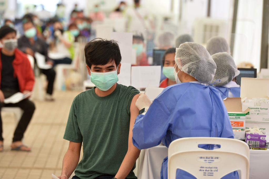 A man receives a dose of the COVID-19 vaccine in Bangkok, Thailand, on Feb. 23, 2022. Thailand reported 21,232 new COVID-19 cases during the past 24 hours, the highest single-day case tally in more than six months, official data showed on Wednesday. (Xinhua/Rachen Sageamsak)