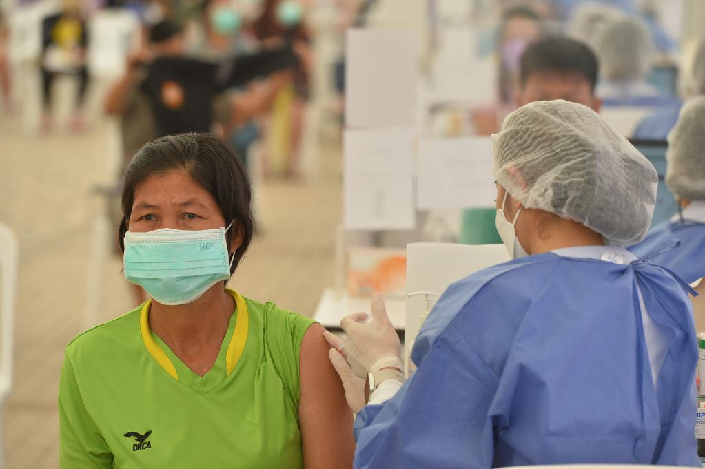 A woman receives a dose of the COVID-19 vaccine in Bangkok, Thailand, on Feb. 23, 2022. Thailand reported 21,232 new COVID-19 cases during the past 24 hours, the highest single-day case tally in more than six months, official data showed on Wednesday. (Xinhua/Rachen Sageamsak)