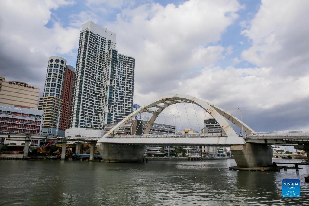 The China-funded Binondo-Intramuros Bridge is under construction in Manila, the Philippines on March 3, 2022. The Binondo-Intramuros Bridge is a steel bowstring arch bridge in Manila City that will connect the Intramuros side and Binondo side over the Pasig River. (Xinhua/Rouelle Umali)