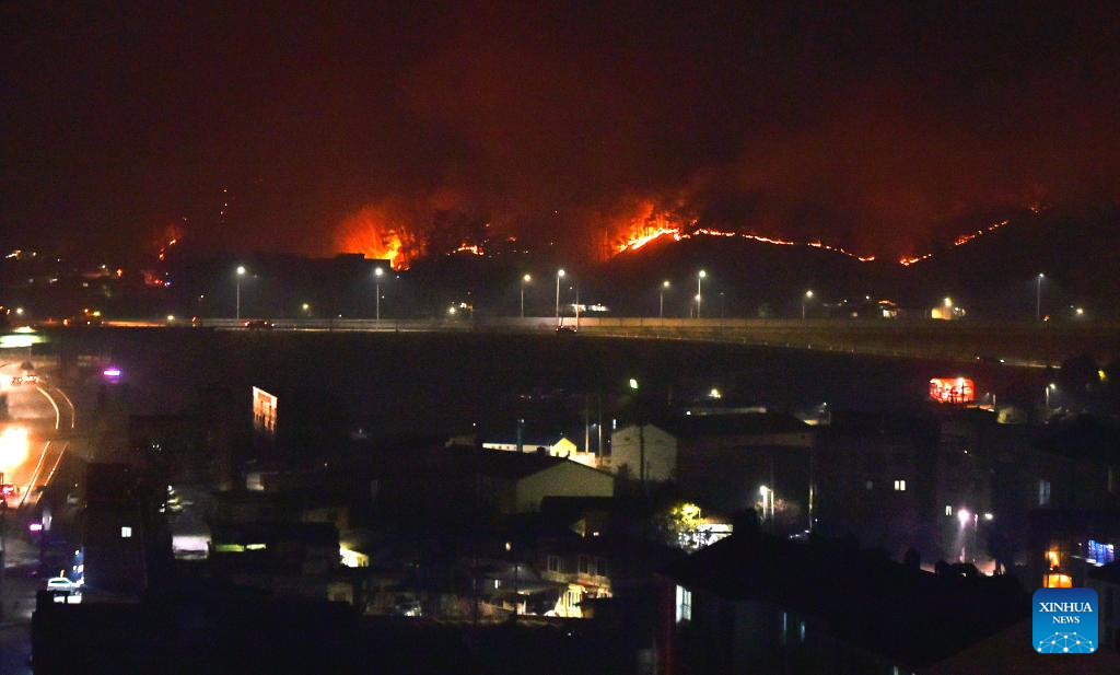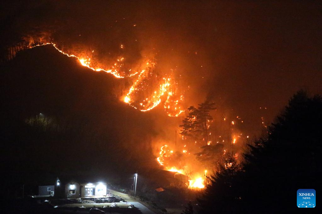 Photo taken on March 4, 2022 shows the wildfire in North Gyeongsang Province, South Korea. (NEWSIS/Handout via Xinhua)