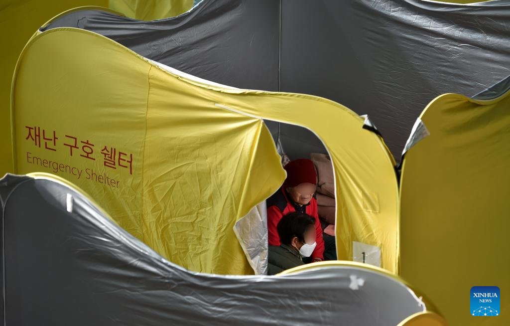 Victims of wildfire rest at a temporary shelter in North Gyeongsang Province, South Korea, March 5, 2022. (NEWSIS/Handout via Xinhua)