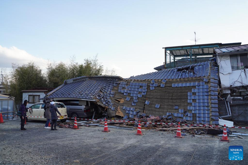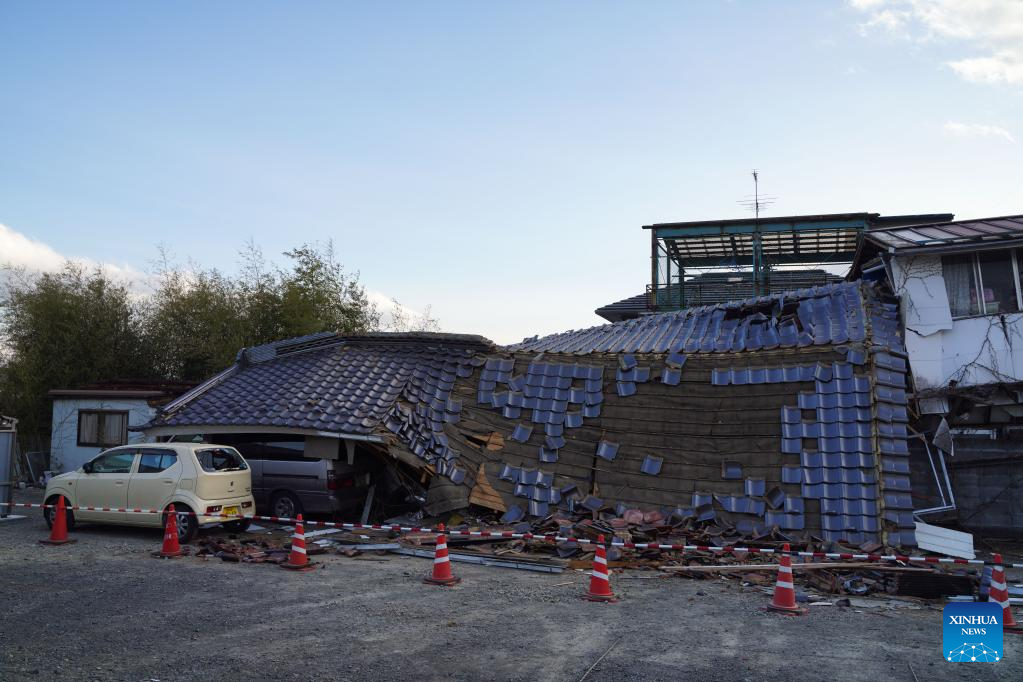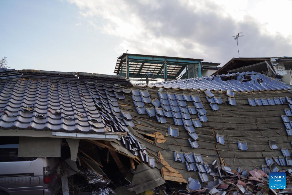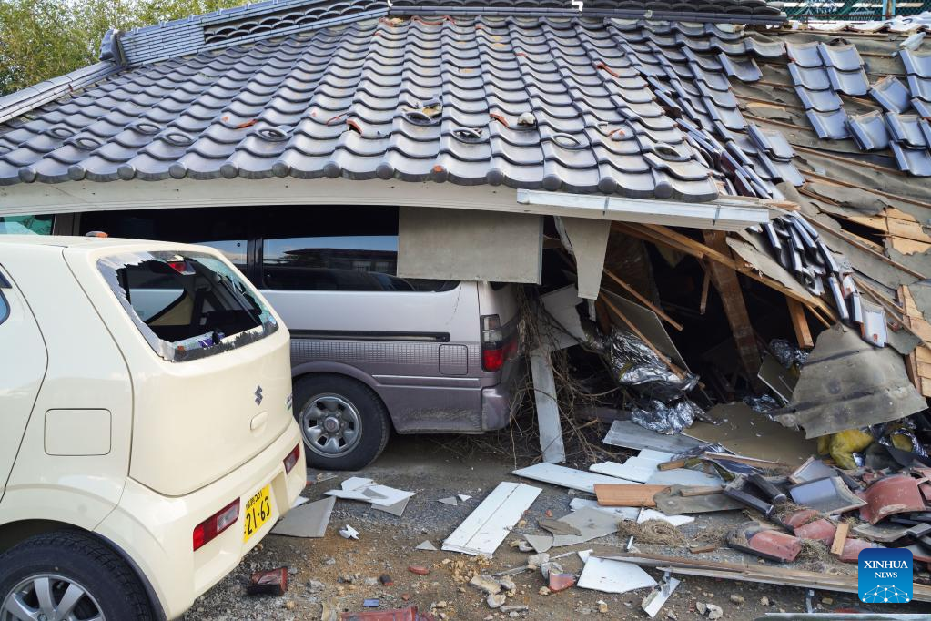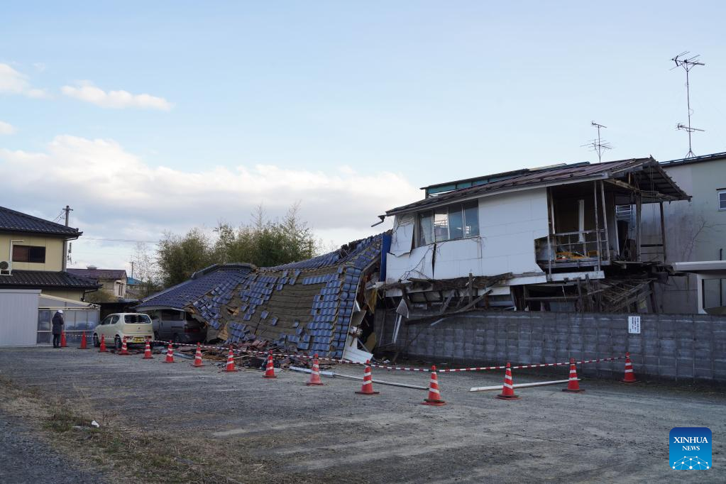 Photo taken on March 17, 2022 shows a damaged house after an earthquake at Kunimi-machi, Fukushima Prefecture, Japan. A 7.3-magnitude earthquake hit northeastern Japan on late Wednesday night. (Xinhua/Zhang Xiaoyu)
