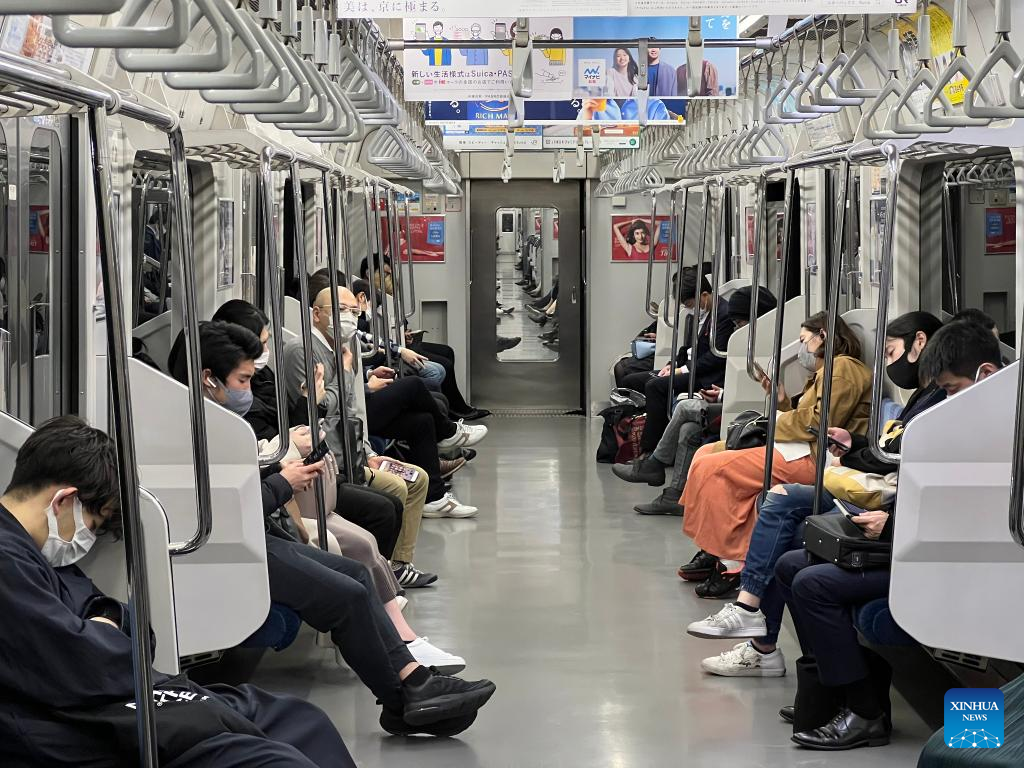 Photo taken with a mobile phone shows passengers stranded in a JR Yokosuka Line train following an earthquake, Japan, March 16, 2022. (Photo by Sun Jialin/Xinhua)