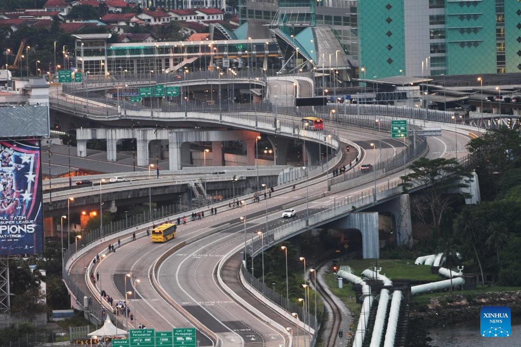 Photo taken on April 1, 2022 shows the causeway linking Singapore and Malaysia by land, on the first day of full re-opening of borders between Singapore and Malaysia. Malaysia opened its borders to international travel on Friday, ending restrictions that have been in place since the COVID-19 pandemic began in 2020. (Photo by Then Chih Wey/Xinhua)