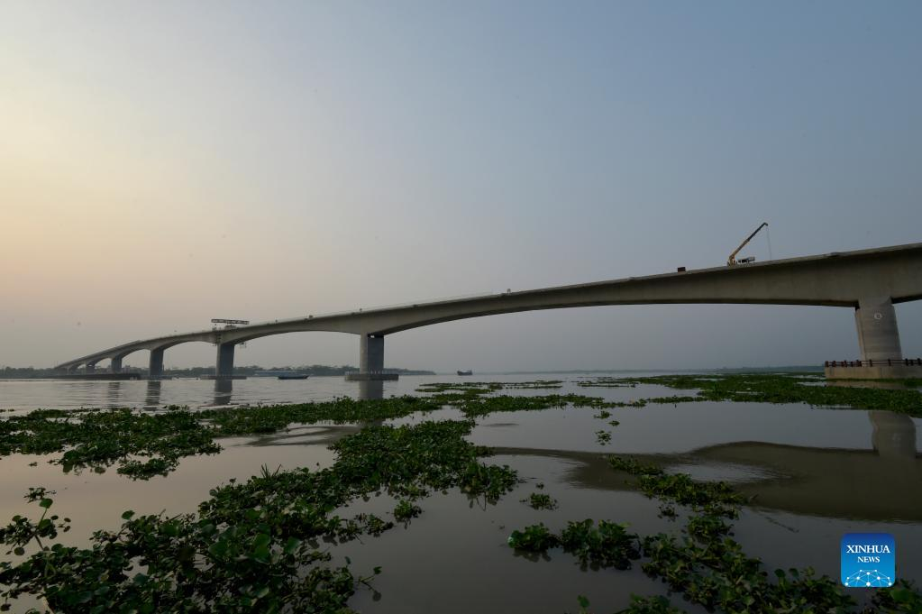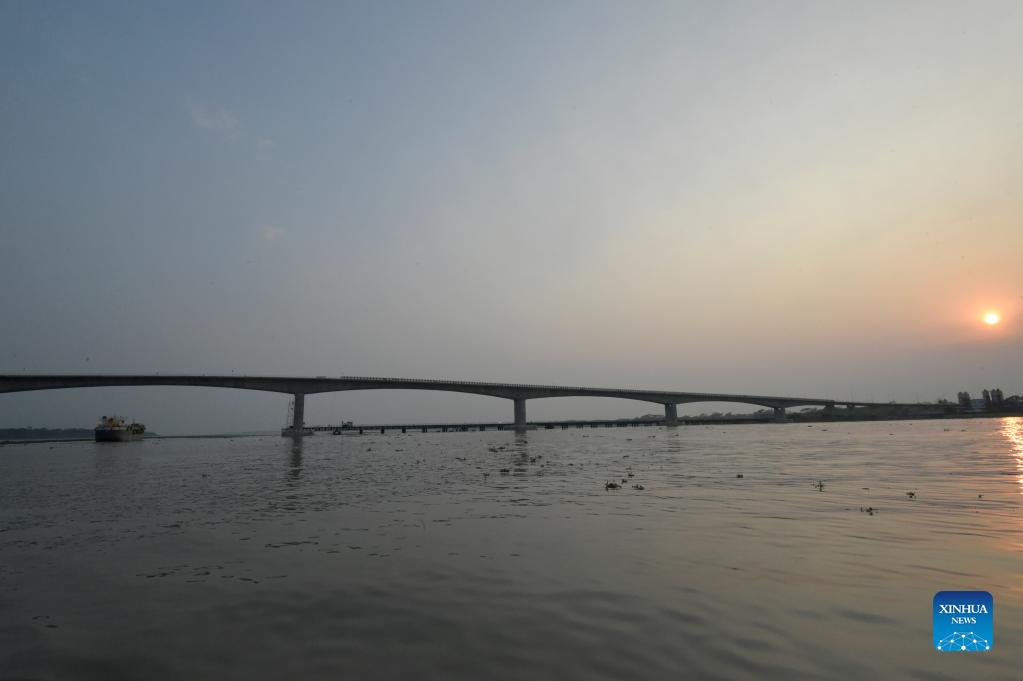 Photo taken on March 23, 2022 shows the eighth Bangladesh-China Friendship Bridge under construction in Pirojpur, Bangladesh. China Railway 17th Bureau Group Co. Ltd. is constructing the bridge over Kocha River in Pirojpur district, 185 km southwest of Dhaka, under the management of China Railway Major Bridge Reconnaissance & Design Institute Co. Ltd. (Xinhua)