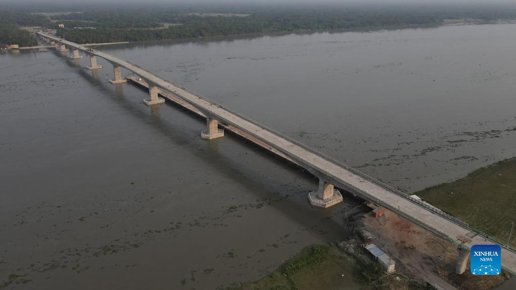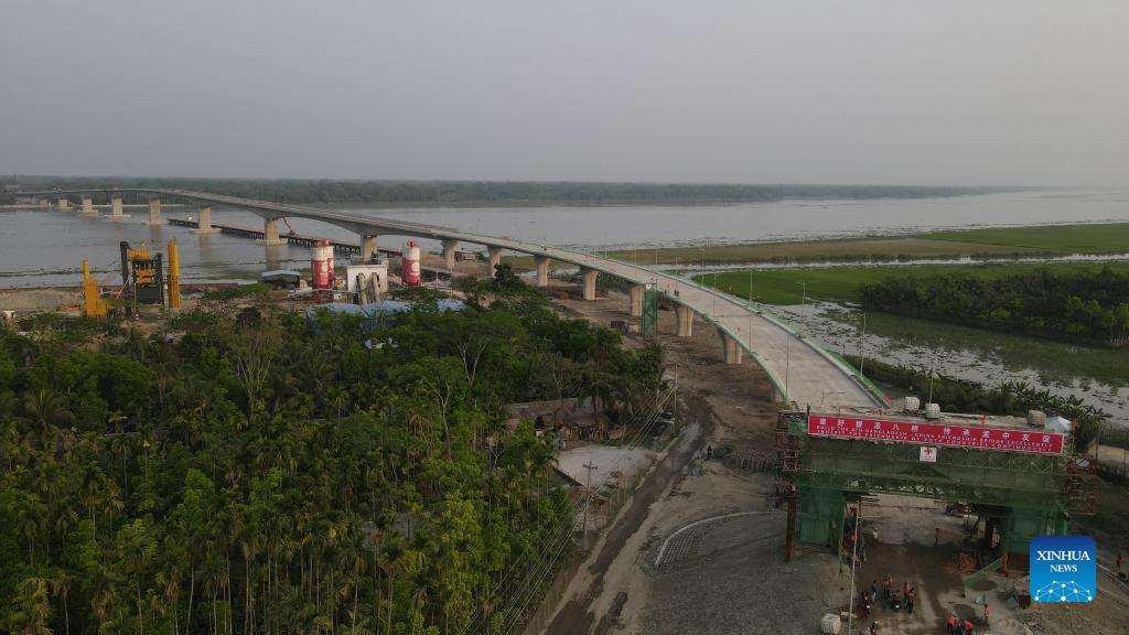 Aerial photo taken on March 23, 2022 shows the eighth Bangladesh-China Friendship Bridge under construction in Pirojpur, Bangladesh. China Railway 17th Bureau Group Co. Ltd. is constructing the bridge over Kocha River in Pirojpur district, 185 km southwest of Dhaka, under the management of China Railway Major Bridge Reconnaissance & Design Institute Co. Ltd. (Xinhua)
