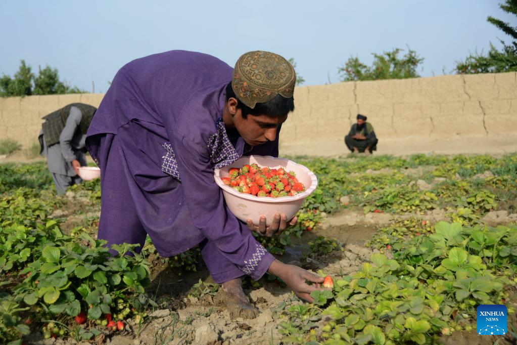 "I grow strawberries on five acres in Zhari," farmer Aziz Ahmad Ahmadi told Xinhua recently. "I earn up to 500,000 afghanis (about 5,688 U.S. dollars) from my land each year."