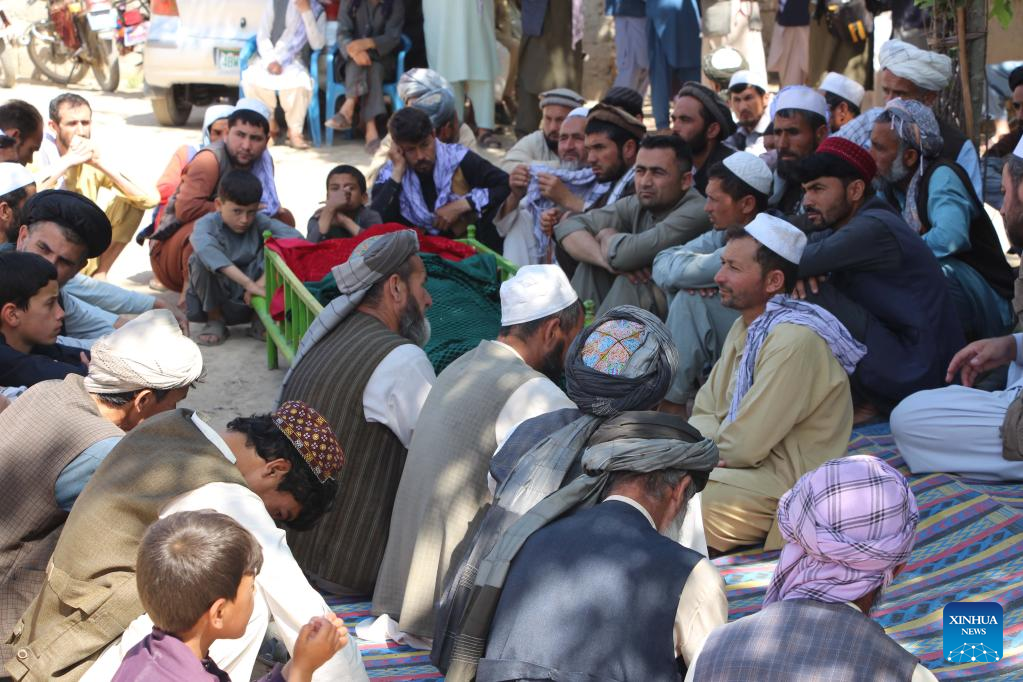 Relatives and friends wait to carry the coffin of a victim of a blast at a mosque in Kunduz, Afghanistan, April 23, 2022. At least 33 people were killed and 43 others wounded after a blast rocked a mosque in Afghanistan's northern province of Kunduz on Friday, chief spokesman of the Taliban-led caretaker government Zabihullah Mujahid said. (Photo by Aimal kakr/Xinhua)