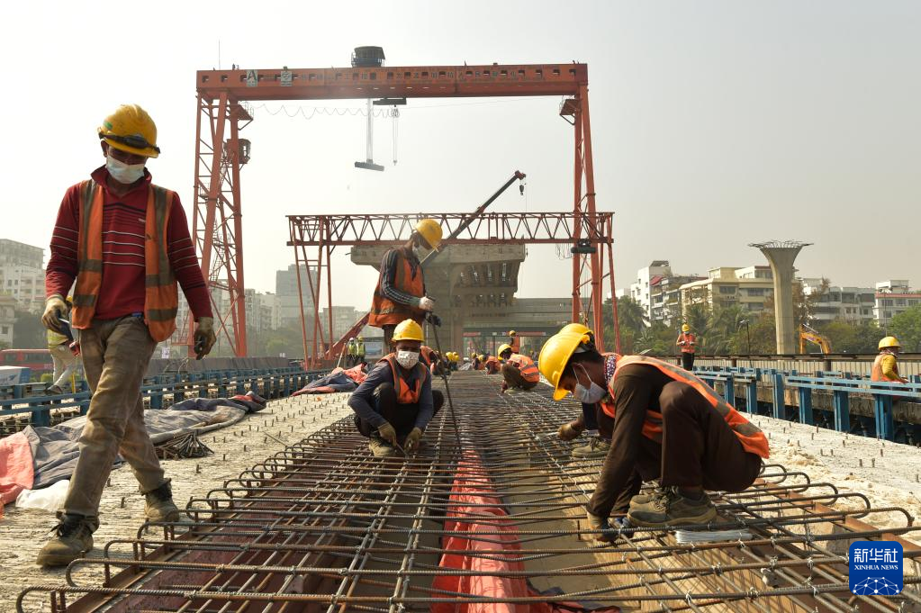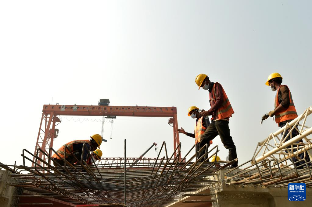 Workers tie rebar cages for the First Dhaka Elevated Expressway (FDEE) in Dhaka, Bangladesh, March 17, 2022. (Xinhua)
