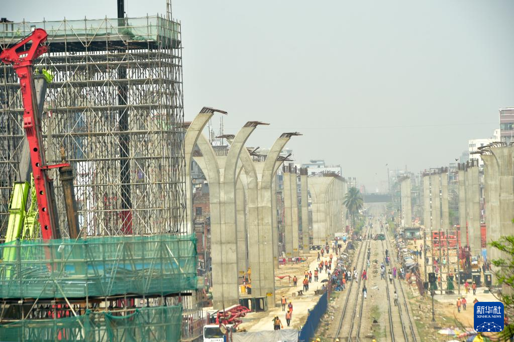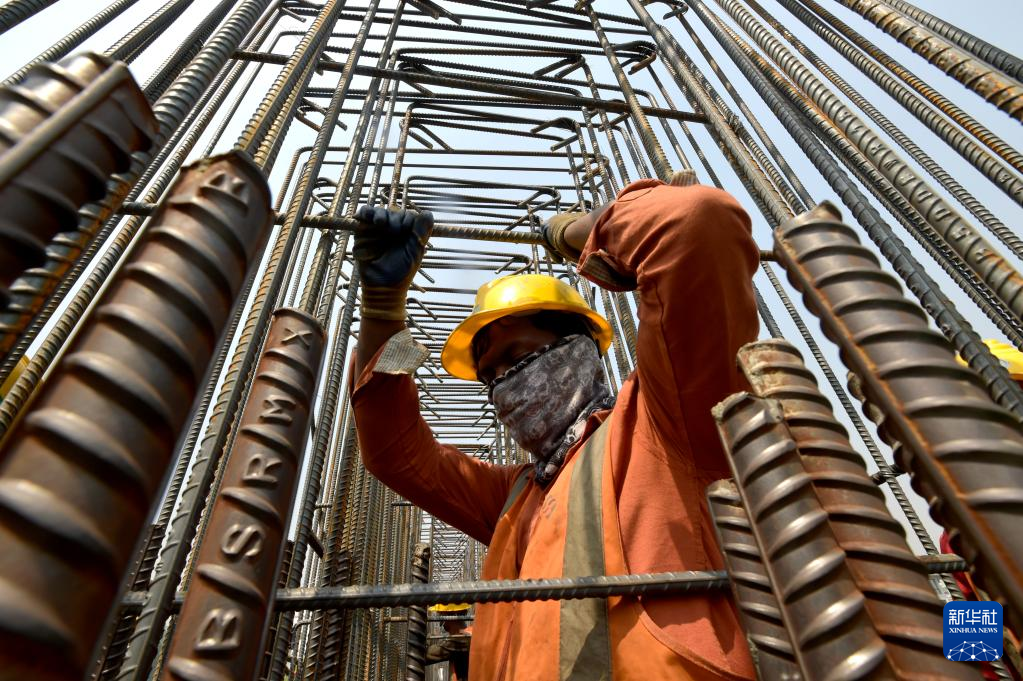 DHAKA, April 25 (Xinhua) -- At midday, when many seek respite from the scorching heat of summer, Fan Zhanyin is busy tying rebar cages for a new Dhaka expressway.