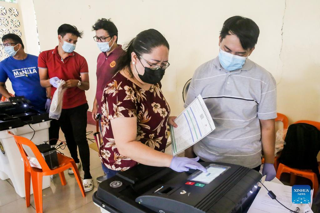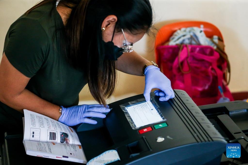 A poll worker tests an election equipment for the coming national and local elections at a school in Manila, the Philippines on May 4, 2022. The national and local elections are scheduled for May 9 in the Southeast Asian country. (Xinhua/Rouelle Umali)