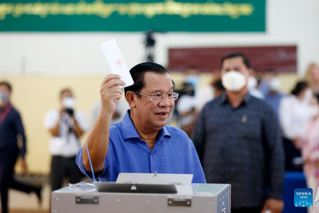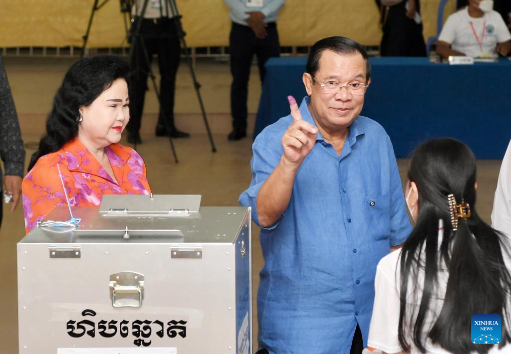 Hun Sen voted at a polling station near his residence in Kandal province's Ta Khmau city, about 10 km south of capital Phnom Penh.