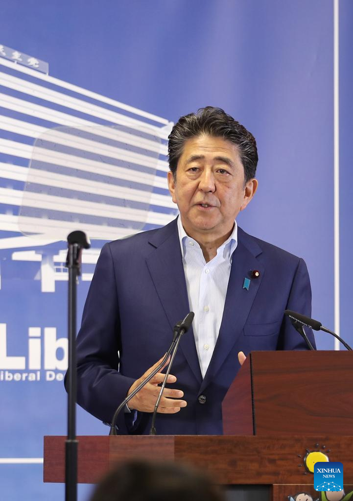 File photo taken on July 22, 2019 shows Shinzo Abe attending a news conference in Tokyo, Japan. Former Japanese Prime Minister Shinzo Abe is confirmed dead after being shot Friday by a gunman during a speech in the western city of Nara when campaigning for Sunday's upper house election, local media reported. (Xinhua/Du Xiaoyi)