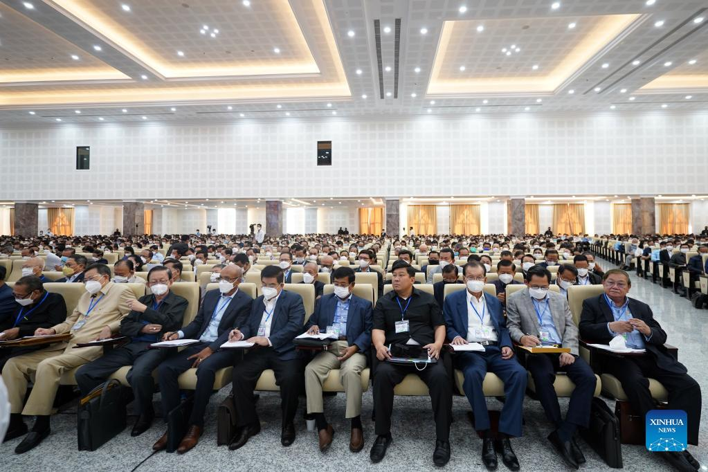 Members of the Cambodian People's Party (CPP) attend the CPP's extraordinary congress in Phnom Penh, Cambodia on July 16, 2022. The ruling CPP held an extraordinary conference of its Central Committee on Saturday to set out an action plan for 2023, the year in which the country's next general elections will be held. (Photo by Ly Lay/Xinhua)