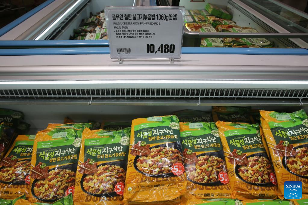 Photo taken on July 9, 2022 shows frozen pan-fried rice at a supermarket in Goyang, South Korea. According to government data, the average price of eating-out in the first half of this year was up 6.7 percent from the same period last year. (Xinhua/Wang Yiliang)