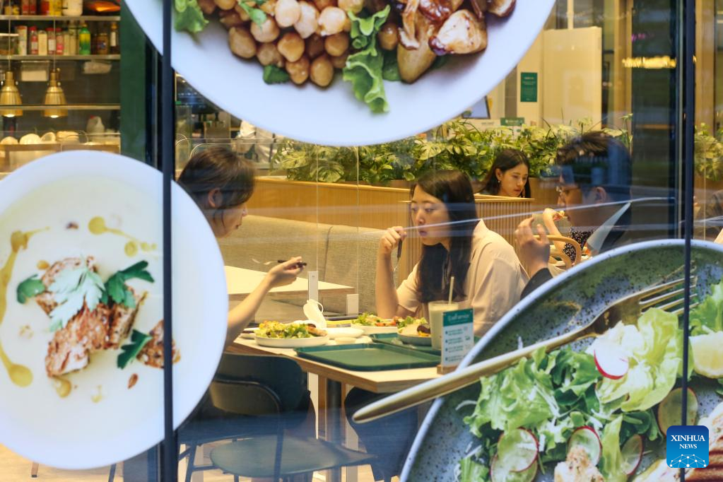 Customers have meals at a salad cafe in Seoul, South Korea, July 18, 2022. According to government data, the average price of eating-out in the first half of this year was up 6.7 percent from the same period last year. (Xinhua/Wang Yiliang)
