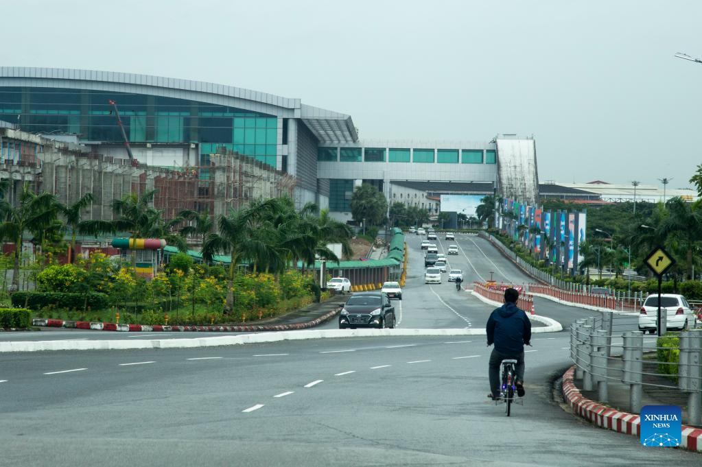 A man rides a bicycle near the Yangon International Airport in Yangon, Myanmar, on Aug. 12, 2022. Myanmar welcomed 42,315 foreign tourists between April and June, up 22.9 percent year-on-year, according to the Ministry of Hotels and Tourism. (Photo by Myo Kyaw Soe/Xinhua)