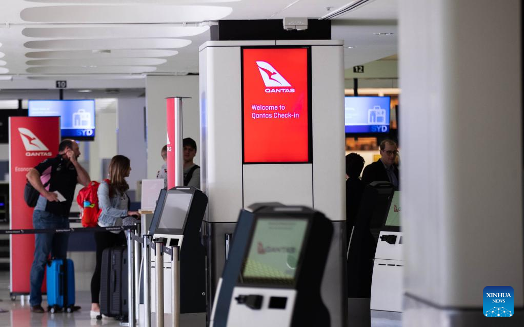 Photo taken on Sept. 14, 2022 shows Qantas check-in machines at Sydney Airport in Sydney, Australia.