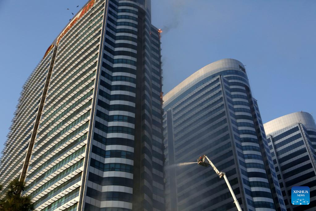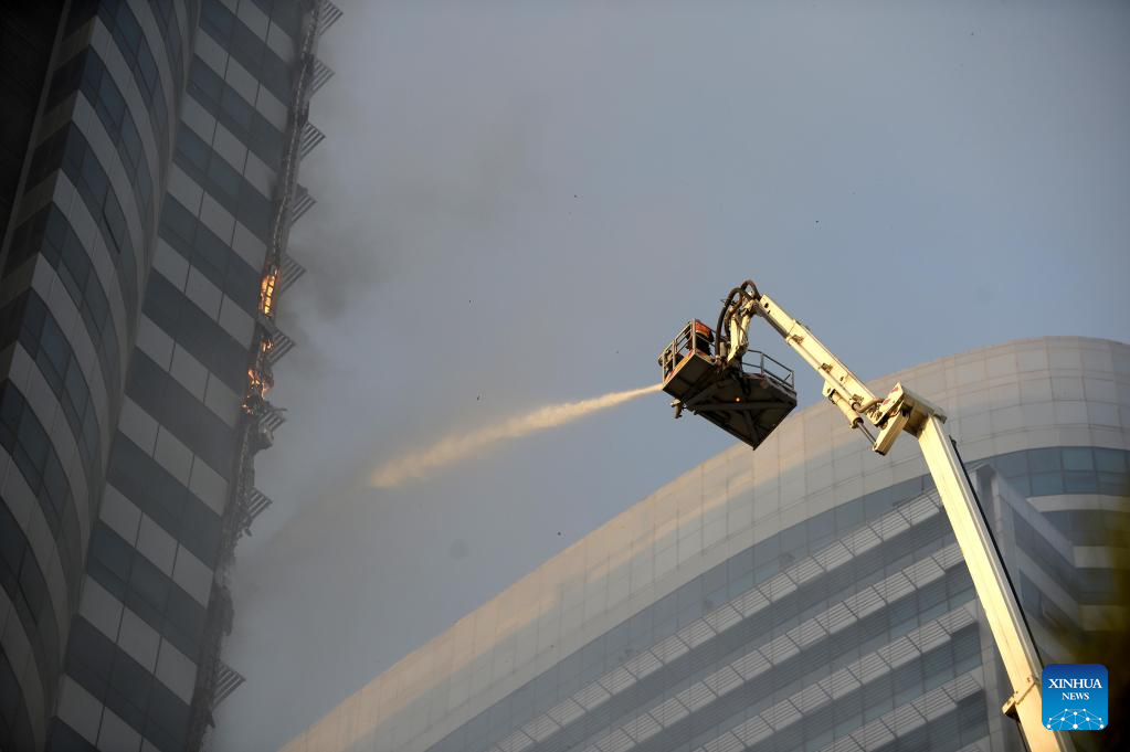 ISLAMABAD, Oct. 9 (Xinhua) -- Firefighters had extinguished the fire in the Pakistani capital Islamabad's Centaurus, a prime building consisting of a major shopping mall and elite residential apartments, after about three-hour long operation on Sunday afternoon, officials said.