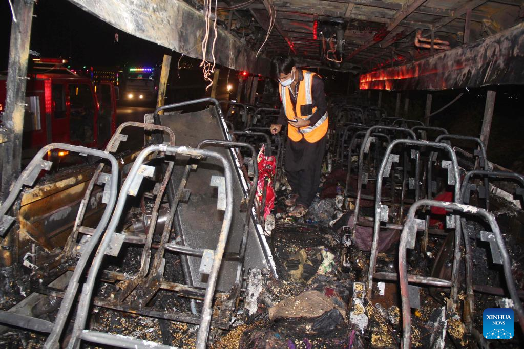 Deputy Superintendent of Police of the area Wajid Thaheem told the media that the bus was engulfed in the fire when it reached the Nooriabad area of Jamshoror district of Sindh province.