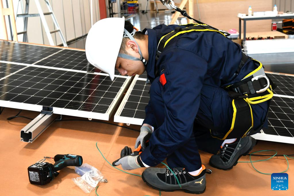 Chen Zhiyong, a student from Guangdong Province Technician Institute, participates in the renewable energy contest during the WorldSkills Competition 2022 Special Edition in Kyoto, Japan, Oct. 15, 2022. Three skill contests of the WorldSkills Competition 2022 Special Edition kicked off Saturday in Kyoto, Japan, where Chinese contestants are competing against other young technicians from around the world.