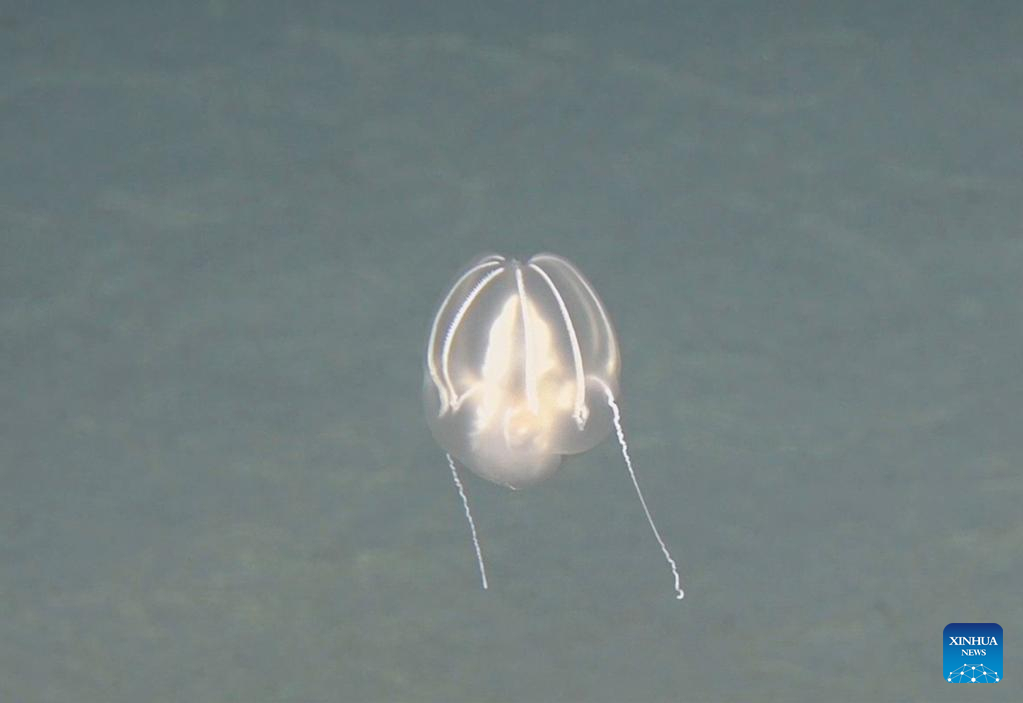 A marine organism is pictured from Human Occupied Vehicle Fendouzhe in deep sea on Nov. 7, 2022. (Xinhua)