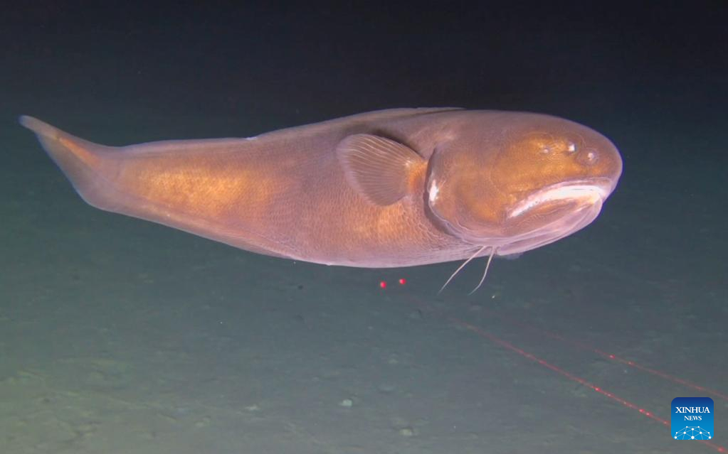 A marine organism is pictured from Human Occupied Vehicle Fendouzhe in deep sea on Nov. 14, 2022. (Xinhua)