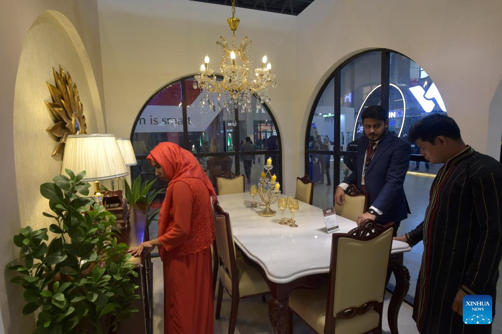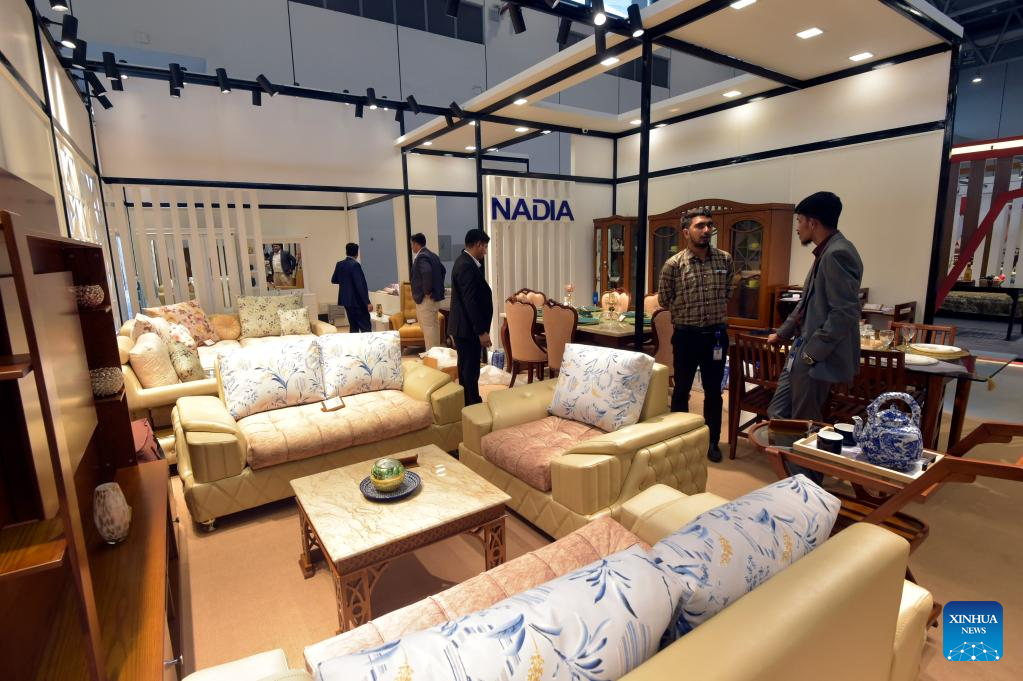 Visitors look at furniture at a stall during the Dhaka International Trade Fair in Purbachal on the outskirts of Dhaka, Bangladesh, on Jan. 1, 2023. The 27th edition of the Dhaka International Trade Fair, the largest annual commercial and trade event in Bangladesh, kicked off Sunday at the mega Chinese-built venue the Bangabandhu Bangladesh-China Friendship Exhibition Center. (Xinhua)