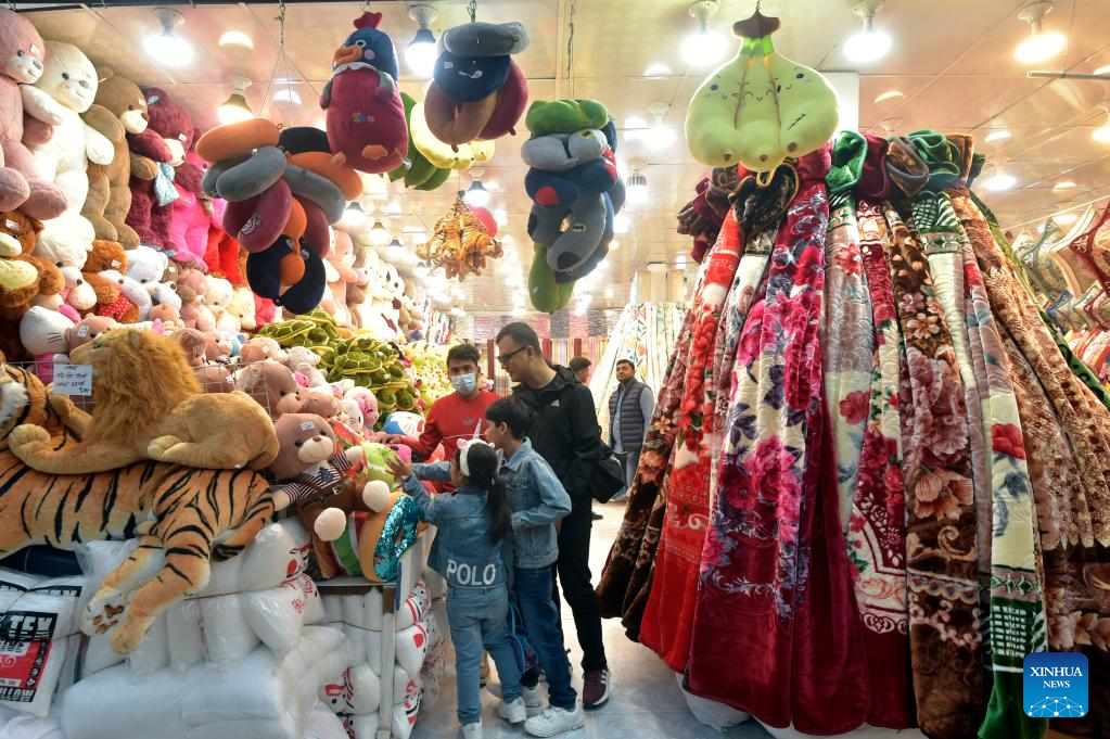 Visitors look at products at a stall during the Dhaka International Trade Fair in Purbachal on the outskirts of Dhaka, Bangladesh, on Jan. 1, 2023. The 27th edition of the Dhaka International Trade Fair, the largest annual commercial and trade event in Bangladesh, kicked off Sunday at the mega Chinese-built venue the Bangabandhu Bangladesh-China Friendship Exhibition Center. (Xinhua)