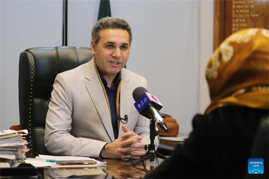 Muhammad Hanif Gul, divisional superintendent of Lahore division at the Pakistan Railways under the Ministry of Railways, receives Xinhua's exclusive interview in his office in Pakistan's eastern city of Lahore on Jan. 5, 2023. Train coaches imported from China are completely compatible with the local track, and have been approved for a commercial run after the initial trial at one of the fastest tracks in Pakistan, a Pakistani official said. (Xinhua/Jiang Chao)