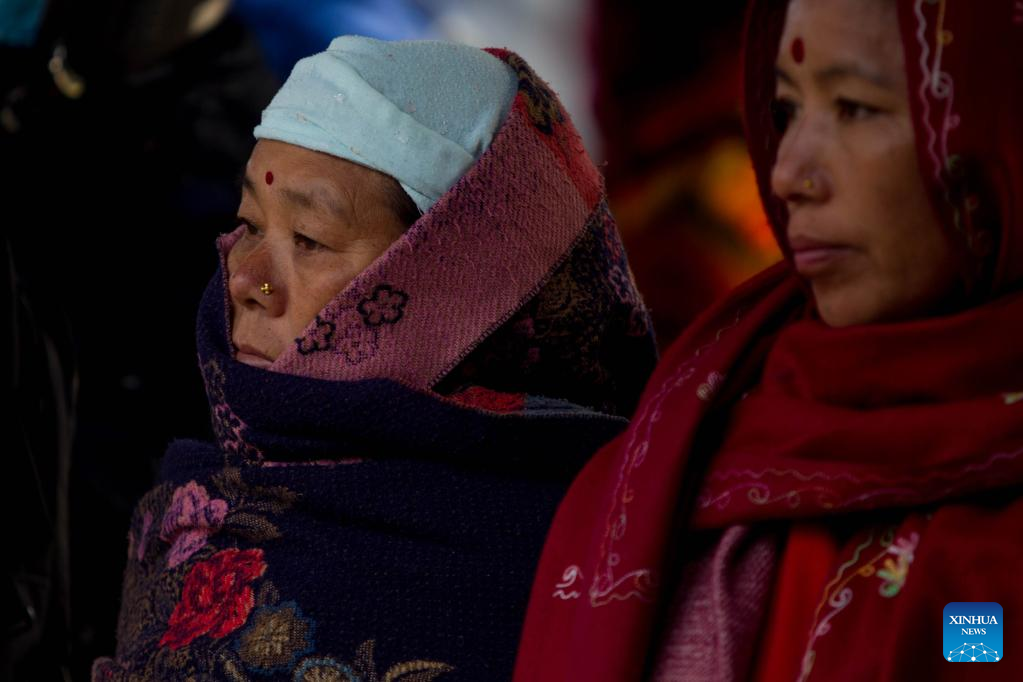 Relatives of the victims in a Yeti Airlines plane crash accident wait for the remains of their beloved to be loaded onto trucks in Pokhara, Nepal, Jan. 17, 2023. The victims' remains will later be transfered to Kathmandu, capital of Nepal.