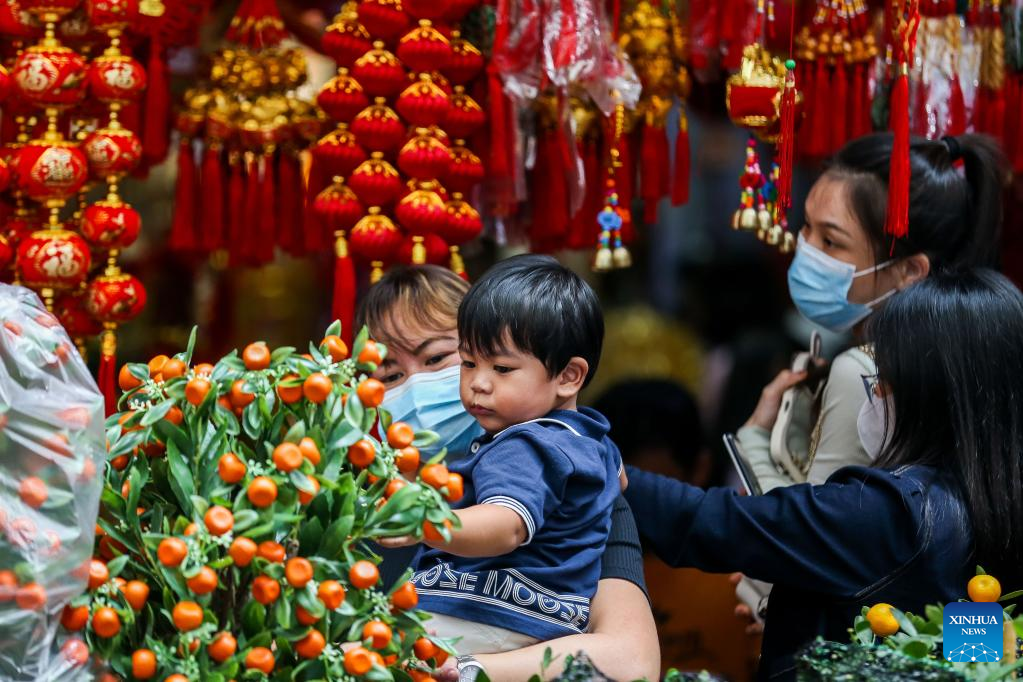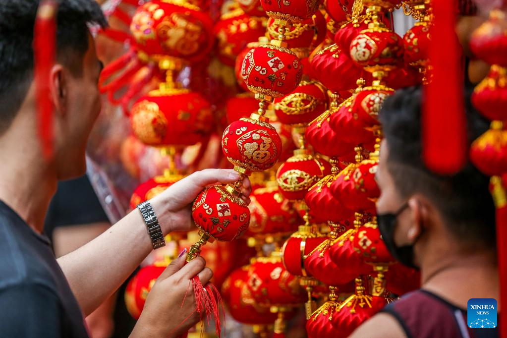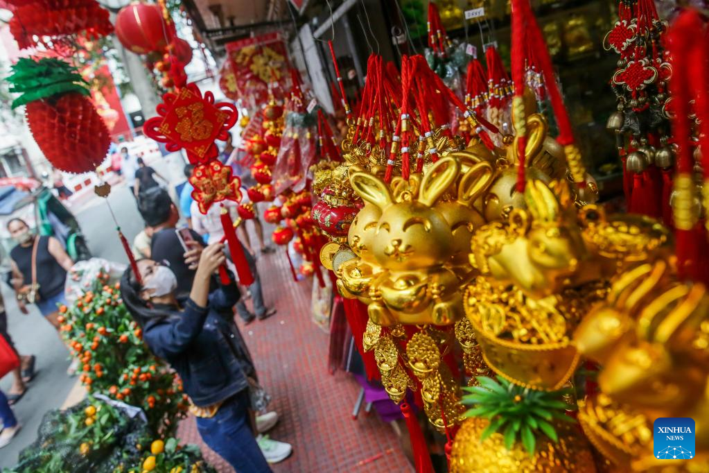 People select decorations for the upcoming lunar New Year at the Chinatown in Manila, the Philippines, Jan. 18, 2023. (Xinhua/Rouelle Umali)