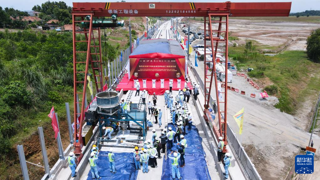 JAKARTA, Feb. 15 (Xinhua) -- With the self-compacting concrete being poured into the last track slab on Wednesday, the construction of ballastless track slabs along the whole line of Jakarta-Bandung High-Speed Railway (HSR) was completed.