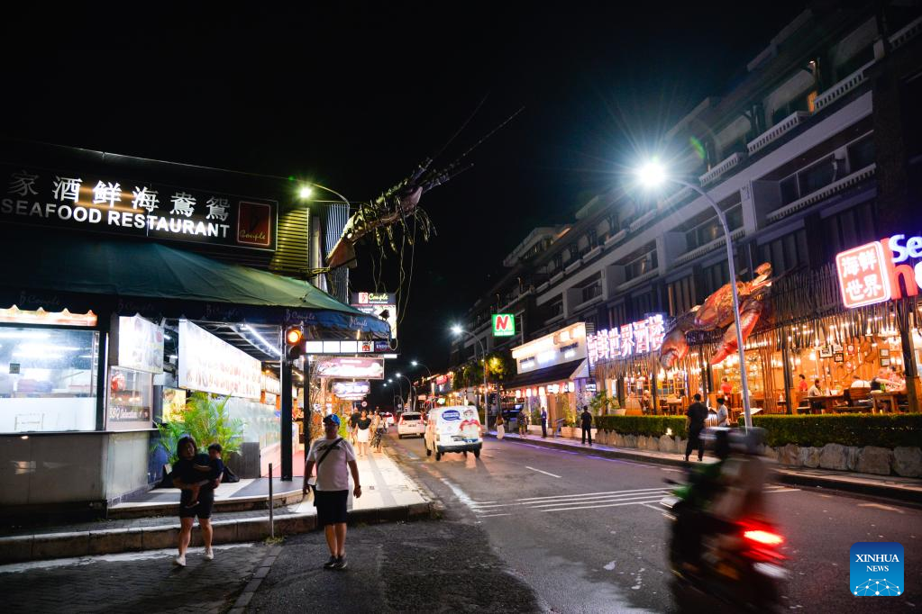 This photo taken on Feb. 13, 2023 shows a street decorated with shop signs in Chinese near Kuta Beach in Bali, Indonesia. Some 1,000 tourists from China's mainland have visited Bali since Jan. 22, 2023 when this famed resort island welcomed back this year's first batch of Chinese tourists by charter flight from Shenzhen, China. (Xinhua/Xu Qin)